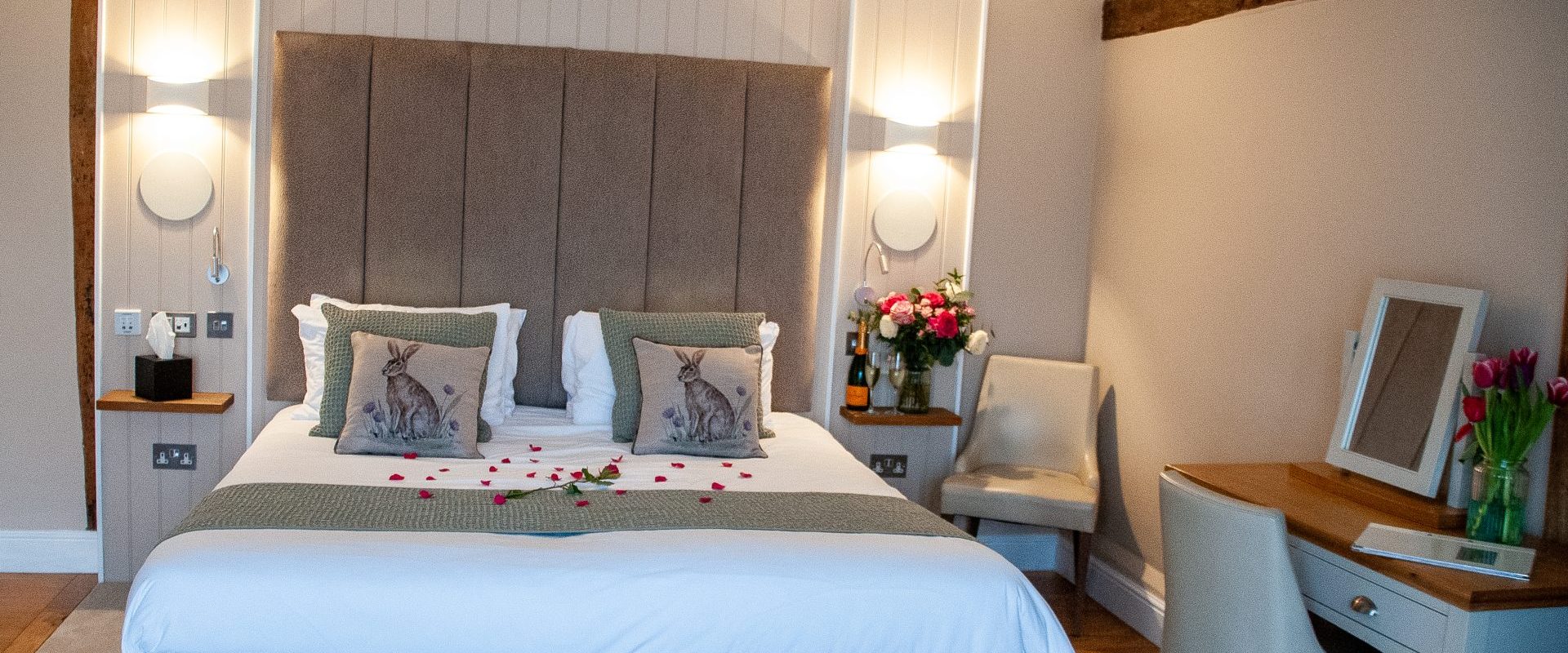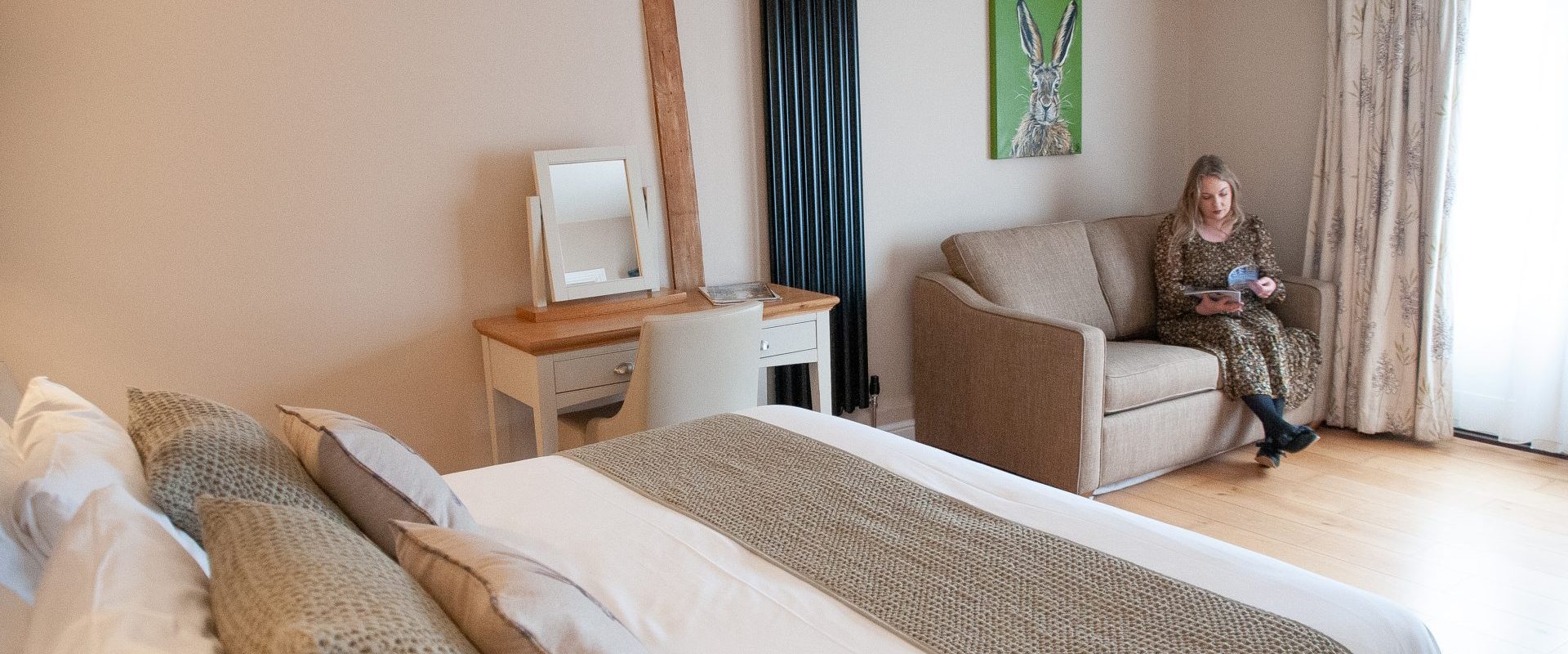 Located within our Coach House, this expansive and elegantly appointed room exudes the charm of a beamy countryside cottage. Situated on the ground floor, it offers stunning vistas of our bustling Victorian kitchen garden from your own secluded terrace. A cozy sofa bed is also provided, making this space an excellent choice for families traveling with children.